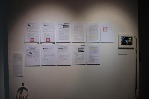 遠房親戚實驗室,《有我在™:NEW 2020》展出於立方計劃空間的「人造單位」策展計劃。圖片中的檔案為2017年民眾檢舉的法律訴訟文件。圖片由立方計劃空間提供。